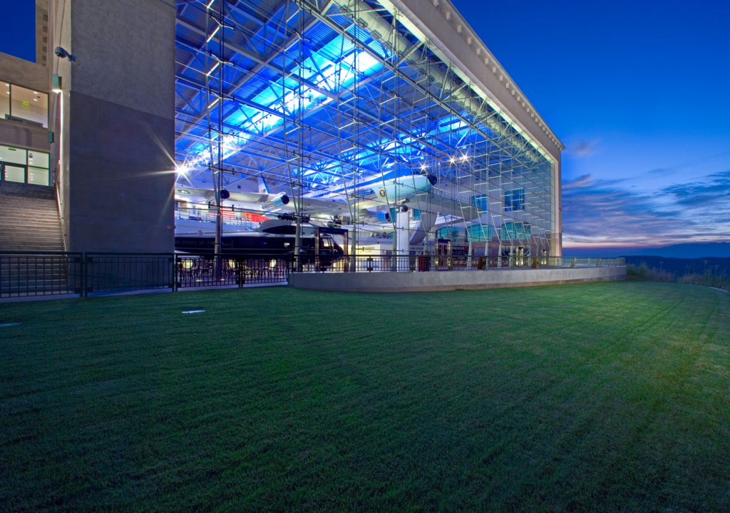 The Air Force One Pavilion is a stand-alone addition to the Reagan Library. The structure houses the Museum of Presidential Travel, including Air Force One, Marine One, an F15 Fighter, and the Presidential Limousine. Since the Pavilion holds such massive exhibits, 200’ wide free span trusses were used to form the building. In addition to modes of transportation, an actual Irish pub from Ballyporeen, Ireland, that was once visited by President Reagan sits within the Pavilion and is actively used as a snack shop.
